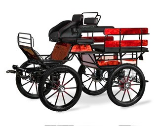 Horse Light Single/Pair - carriage width 125cm,pneumatic or hard tires, spokes steel painted, rear disc brakes, park brake,5th wheel brake, Equalizer for single trees, independent shafts, torsion pole, front seat slides to middle, Storage under seat, soft spring suspension, groom handles with wrap
