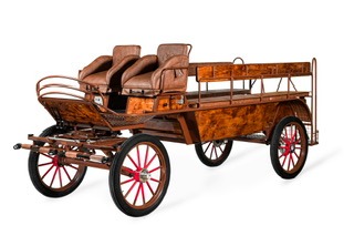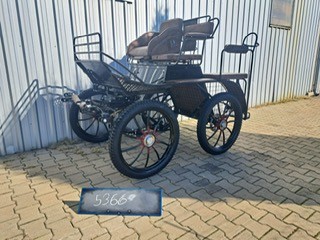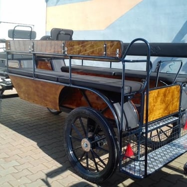 Debutant- carriage width-125cm,hard or pneumatic wheels, steel painted spokes, rear disc brakes, park brake,5th wheel brake in front, independent shafts, drivers wedge with aisle, air ride suspension, storage under seat, spindle seats front and back, wood trim, Lamp brackets