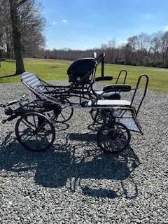 Noah Ultralite- weight 187lbs, carriage width 125cm, hard or soft tires, Steel painted spokes 19 & 17, rear and park brakes, Independent shafts, drivers wedges, soft elliptical springs suspension, wrap on groom handles, Pole conversion kit for pairs available